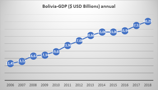 This admittedly economically successful governance of Evo Morales was achieved mainly due to the increase in natural gas prices and other minerals exported by Bolivia abroad. As soon as natural gas prices decreased the annual State budget had a deficit which for 2019 this deficit is in the order of 7.40% of GDP.