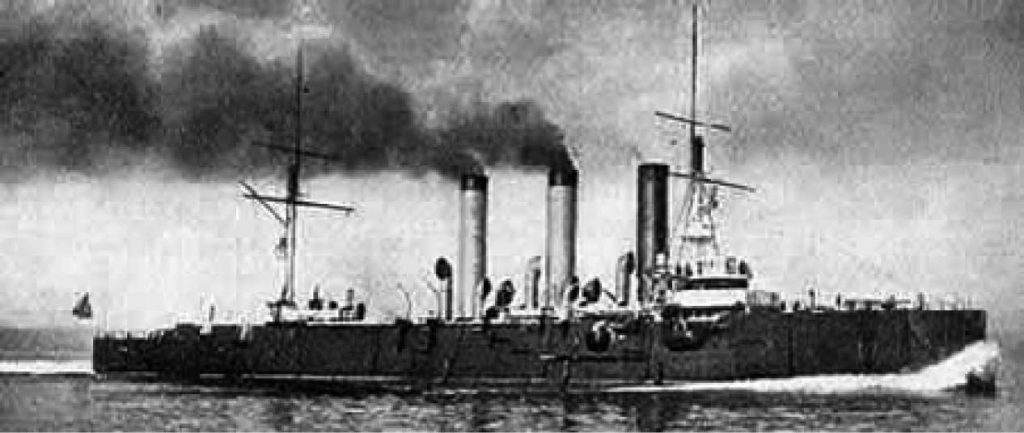 The rest were of old construction, slow-moving and equipped with 254 mm guns. Also, the 1885-built old battleship Admiral Nakimov, which carried 203 mm guns, had joined the battle line of battleships. The fleet also had 7 cruisers – the two armored (the term of the time corresponding to the latest heavy cruisers) and one equipped merchant, 9 destroyers and 9 more auxiliary ships.