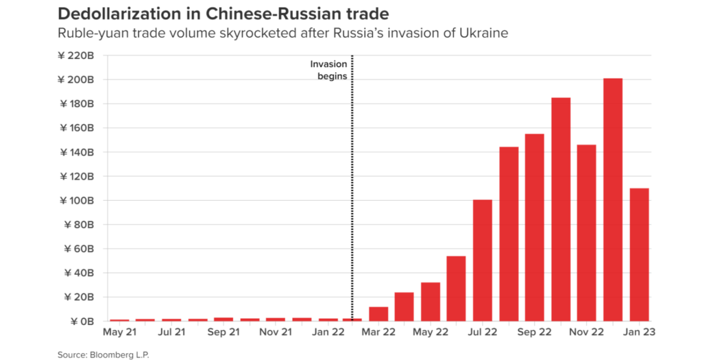However, Russia, on the other hand, complements the alliance by exporting crude oil to other developing countries. Trade growth between 2017 and 2022 remains normal. However, things change in 2023 as the BRICS alliance seeks to end dependence on the dollar.