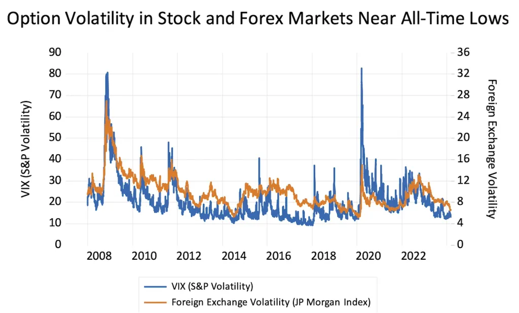 The cost of options on the S&P 500 (the VIX index) or the cost of options on major currencies is near an all-time low. However, options only provide hedges against short-term fluctuations and their payoff depends on the smooth functioning of the derivatives markets.