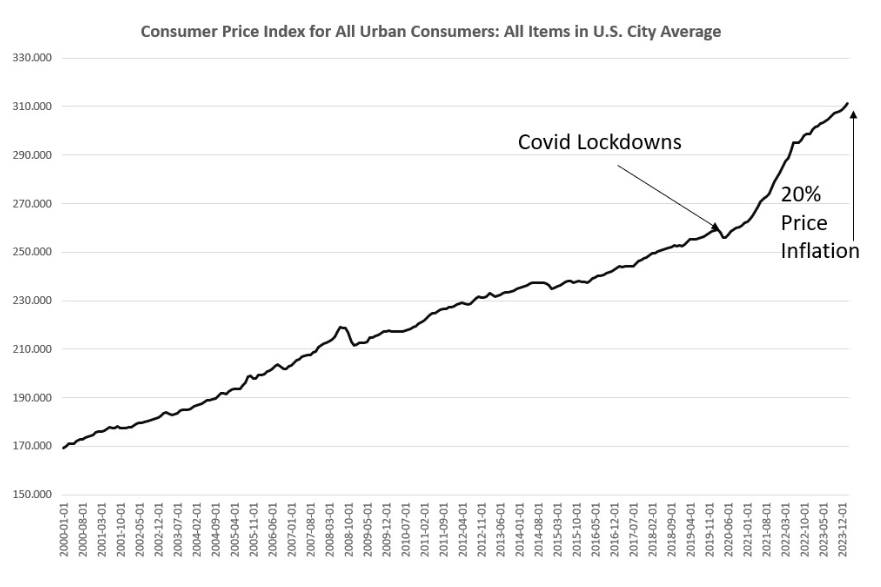 In other words, the monetary inflation fueled by the economic measures for Covid created today’s ongoing price-inflation spiral.