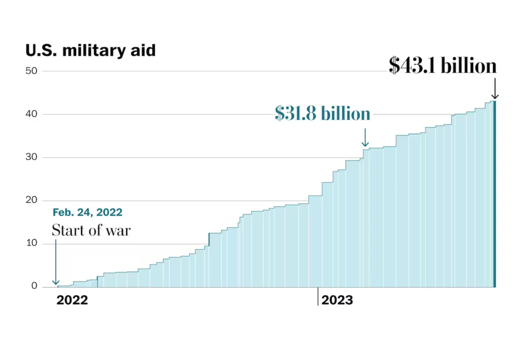 Nearly $61 billion of the $95 billion in the proposed funding package is earmarked for reigniting the conflict in Ukraine (at least $23 billion of that would be spent on replenishing depleted US weapons stockpiles).