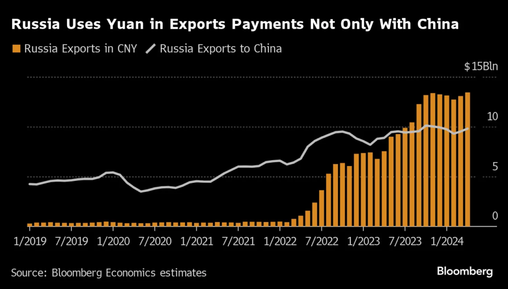 The dollar will play no role in the payment system, so that all transactions are fully settled with local currencies. China is aiming to make the Chinese yuan the dominant currency, and Russia is helping it achieve that goal.