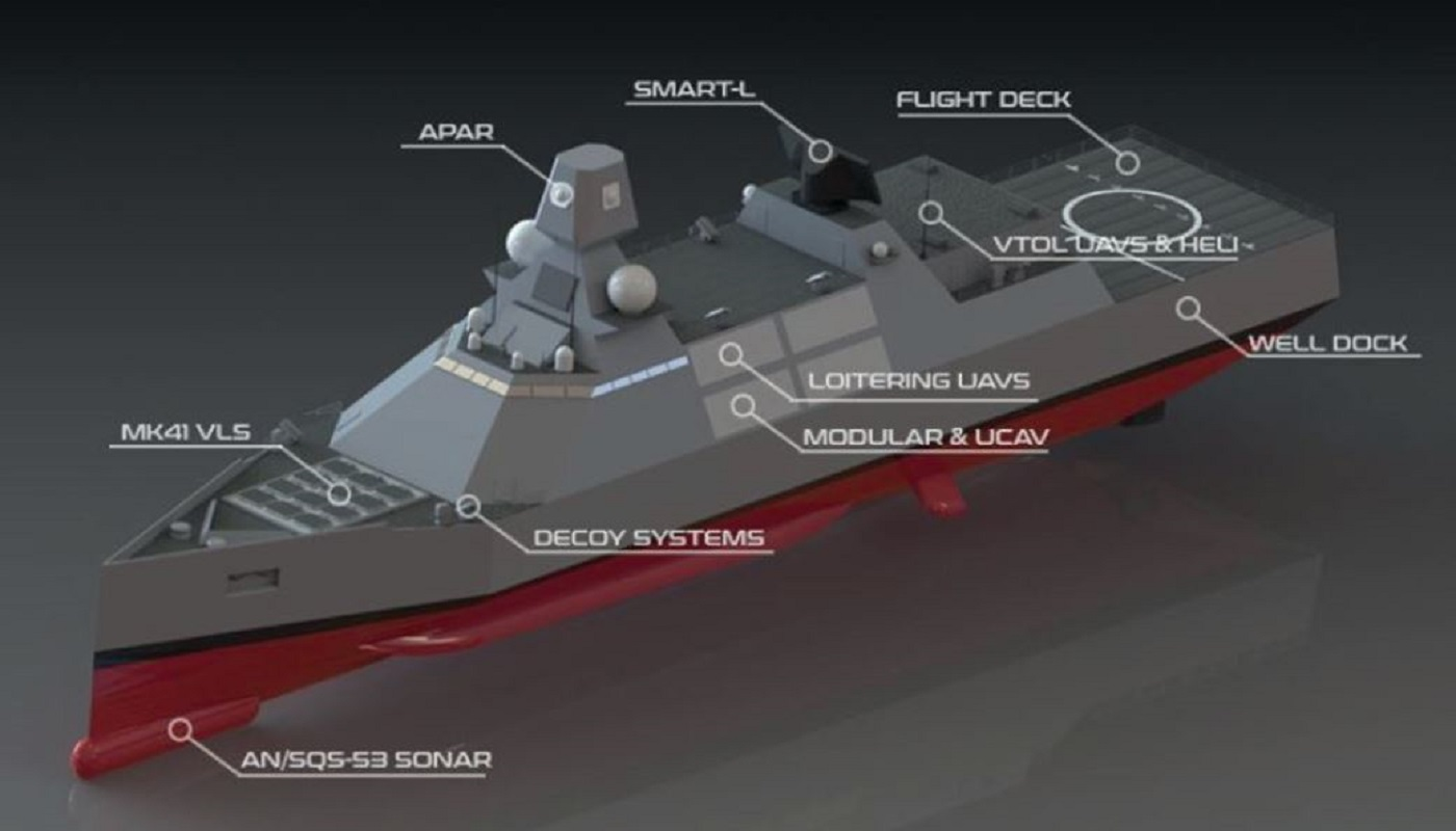 A hybrid ship was designed which had all the electronic systems and weapons for self-defense and at the same time the transport and launch areas, UAV, UCAV, USV, UUV and loitering munitions. Although the design is currently nothing more than a concept, a ship with these capabilities could dominate coastal waters where drones would give it multiple operational capabilities in air, land and sea.