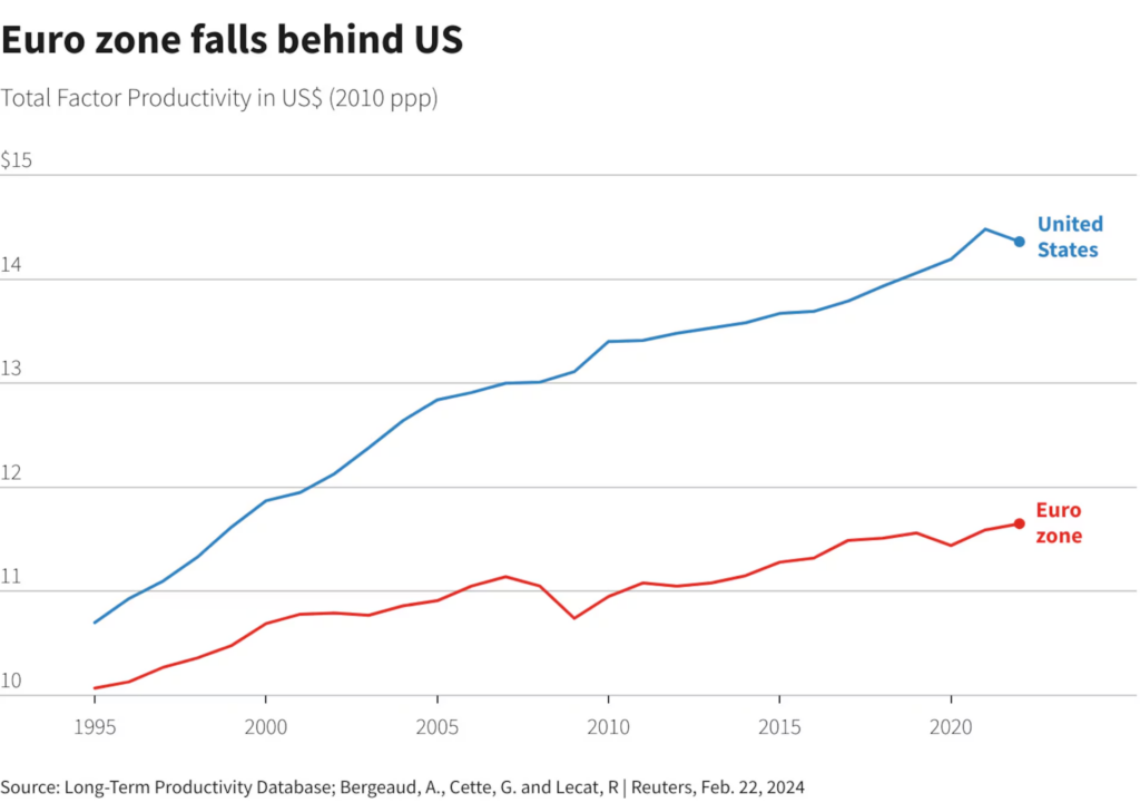 If you want to be a geopolitical power, then economic power is the key ingredient. The failure to increase productivity was simply disastrous. Europe is still rich, but the 20-year lag has huge implications.