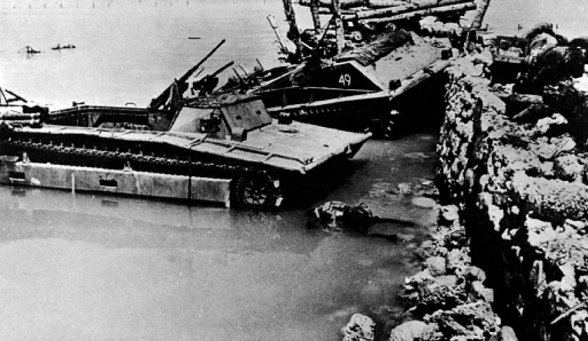 The horrific losses suffered by the first wave reached 70% of the men who landed with the first 42 LVT-1s. The second and third waves met the same fate as the first, causing the reinforcements, Major Kyle’s 1/2nd Battalion and Major Ruud’s 3/8th, to be released. The coral reef stopped these reinforcements as well, which began to be decimated by Japanese fire.
