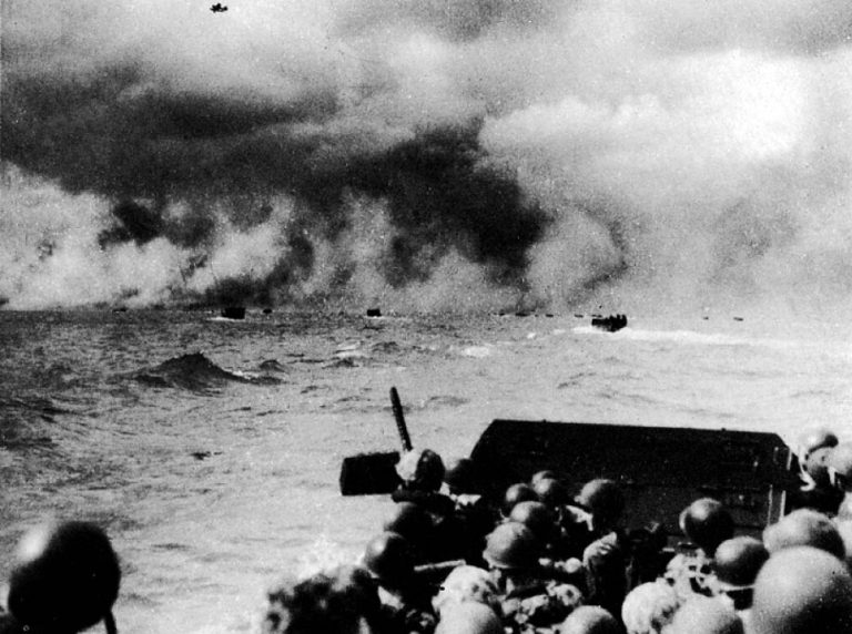 In “Red 2” the 2/2nd Battalion was facing deadly fire. Several LVTs had been hit directly by artillery shells and long-range weapons, causing the surviving Marines to jump into the sea, trying to get to the shore, where most were “mown down” by the fire of coastal machine guns.