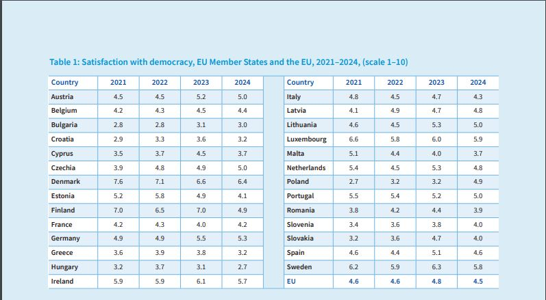 According to a new survey published by the official EU organization (Eurofound, the European Foundation for the Improvement of Living and Working Conditions)-“Quality of life in the EU in 2024: Results from the Living and Working in the EU e-survey“, Greeks are the most pessimistic of all member states, but also the most dissatisfied with their standard of living. They are also deeply disappointed with the way democracy works in their country, coming third from the bottom after Orban’s Hungary, not far behind neighboring Bulgaria, which is experiencing a prolonged political crisis.