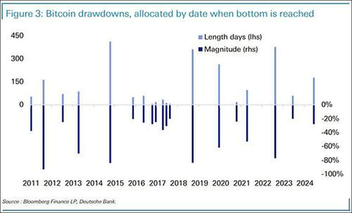 “Downtrends: Despite the ongoing uptrends, significant declines (19 episodes since 2011) are common, with an average decline of 44% in 123 days. Since 2018, these declines have deepened (-50% vs. -41%) and have been prolonged (194 vs. 82 days on average).” Imagine, the “average” correction has reached 44%. About 4 declines since 2011 were around 80%.