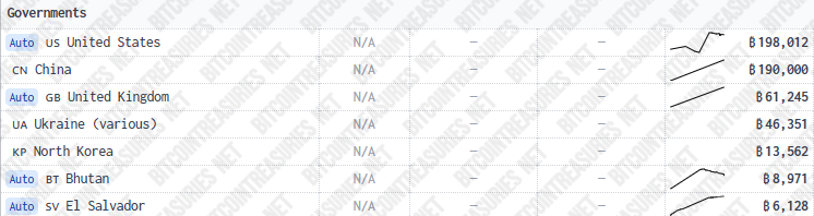The US government has topped the list of largest government BTC holders, surpassing China’s holdings.