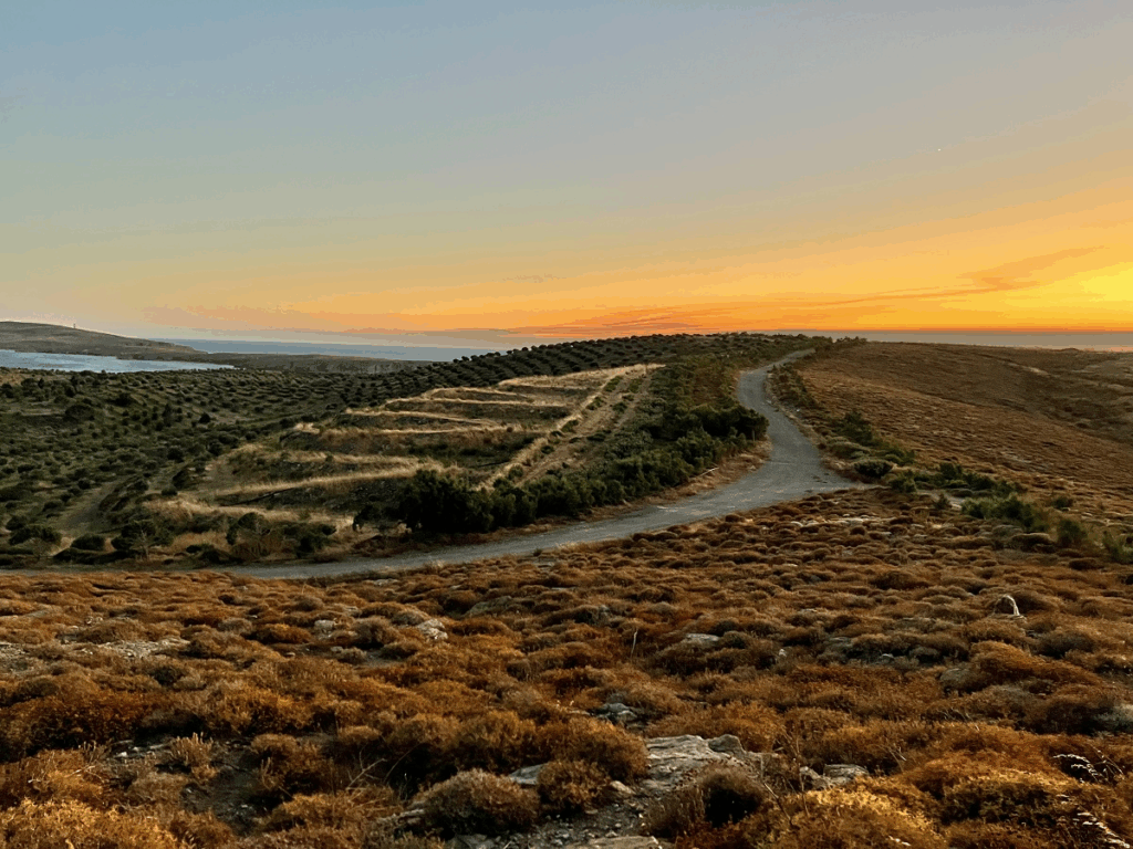 So, we have half an island green in shades of olive and half brown in shades of stone. Or at least until recently, because in the last 15 years, with the olive grove growing on the Faros peninsula, the colors have begun to change. The entire landscape is transforming and coming to life again, millions of years later.