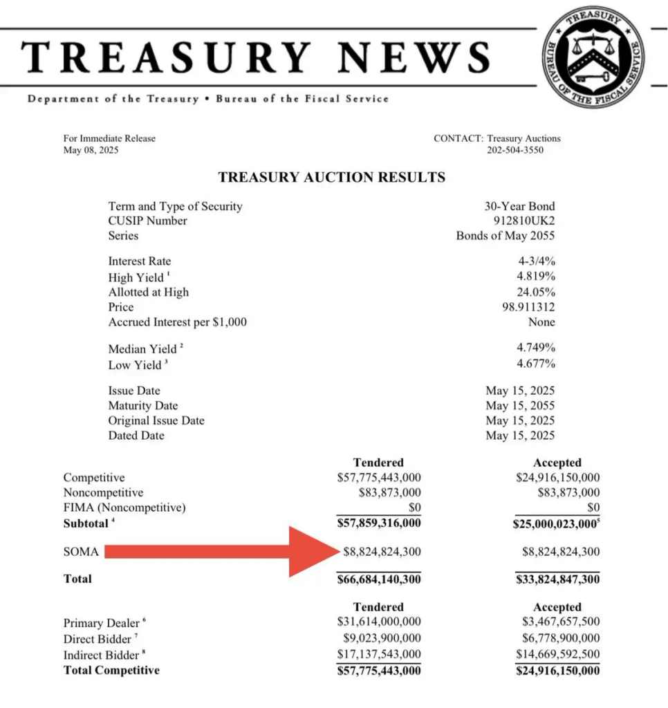 That’s $8.8 billion in long-term 30-year bonds on May 8 alone, plus another $34.8 billion earlier in the week. Not exactly small change.