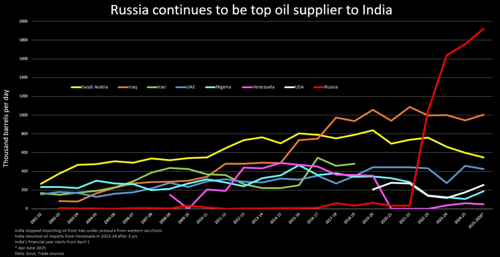 India and China are trying to remain neutral and strengthen their own economies as the West destabilizes its energy sector. “Everyone was buying Russian oil before 2022. To impose sanctions only when India does is pure hypocrisy,” he concludes.