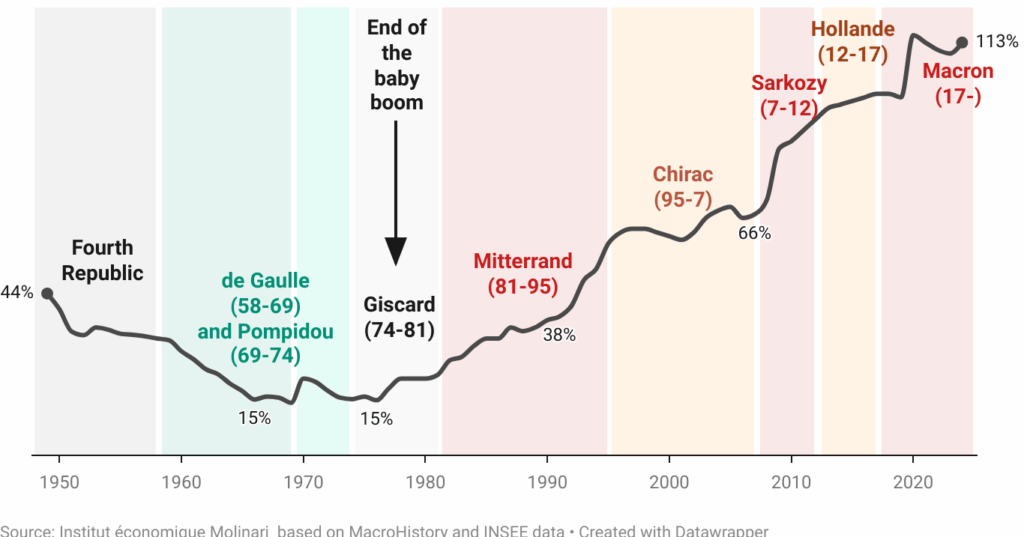 Public debt stands at around 114% of GDP, with François Bayrou’s government planning new borrowing of 5.4% of GDP this year — figures so far from the now-defunct Maastricht criteria that they are dizzying. In July, Bayrou managed to reduce the projected deficit from 5.8% to 5.4%, a reduction of just €5 billion.