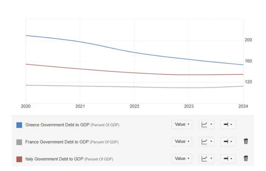 However, in the face of a €3 trillion debt mountain, this reduction is a drop in the ocean — the economy is in deep trouble and the political class is on the verge of collapse.