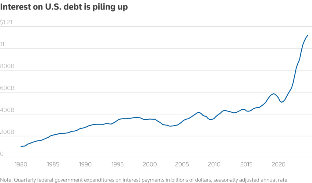 The world’s largest economy has not escaped the attention of the markets. Its nominal debt is nearly $37 trillion.