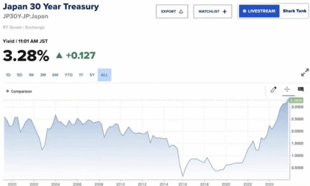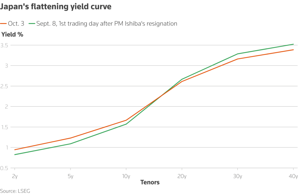 Yields on 10-year Japanese bonds remain low, around 1.6%. But Thanos Chonthrogiannis of Trust Economics noted that 30-year yields have risen sharply, particularly since Takaichi’s selection, and suggest that 10-year yields will exceed 4% over a 20-year horizon.