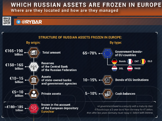 Euroclear holds €193 billion in frozen Russian funds, €180 billion of which is held by the Russian Central Bank.