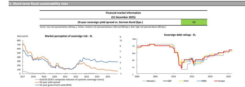 The end of the Commission’s research note describes another risk for the Greek economy as it is disproportionately dependent on tourism, given the impact on GDP and employment in the Hospitality, Food and Entertainment services – notably according to provisional data from the Bank of Greece for 2025, tourism revenues exceeded 20 billion euros in the period January – September 2025 – with an increase of approximately 9% compared to 2024.