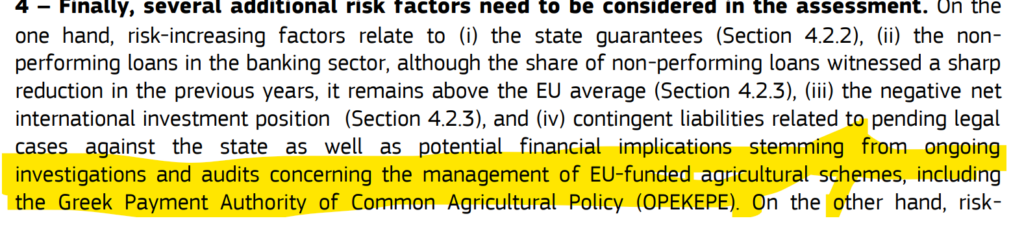 The distortion of European agricultural subsidies with heavy government responsibilities and involvement as revealed by the OPEKEPE scandal not only destroys the country’s primary sector but also threatens fiscal stability both in the form of refunds and fines. This is a “black hole” of unknown dimensions.