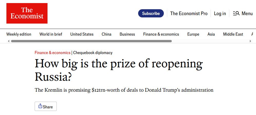 Furthermore, it is supposed to outline Moscow’s basic position on possible economic agreements with Washington linked to a future peace treaty in Ukraine, which is described – not coincidentally – by Bloomberg as “a striking reversal of the Kremlin’s policy and a dramatic change in the global financial system”.