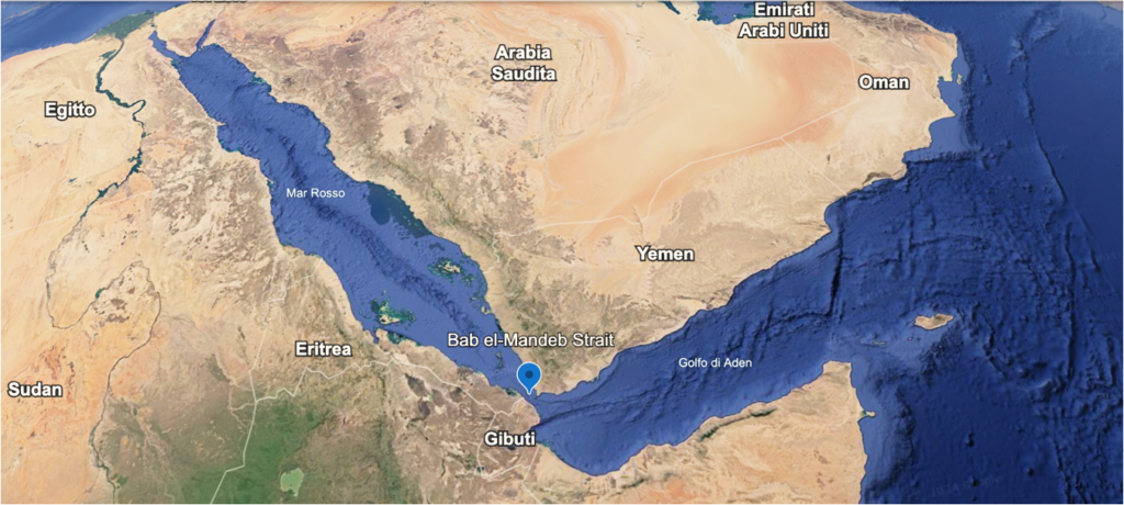 The southern gateway to the Red Sea, where the Houthis have controlled shipping for a year and a half. On the African side are Djibouti and Eritrea (which disputes control of the Doumeira Islands) and on the Asian side is Yemen.