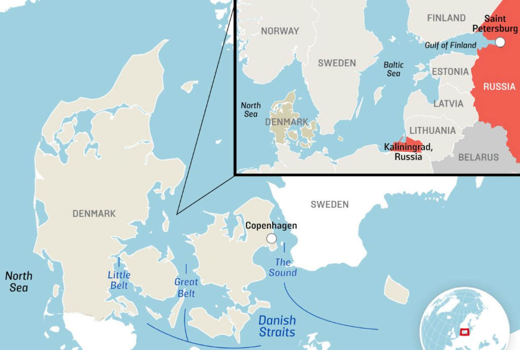 This is the main gateway for Russian exports to Europe. Any restrictions here have a significant impact on Russian ports. These straits are typically under Danish control, but Britain also has interests there.